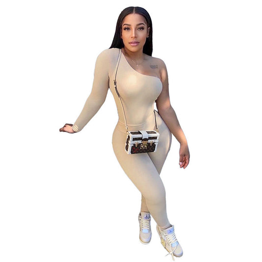 Two-piece Sloping Shoulder One-sleeve Bodysuit Trousers