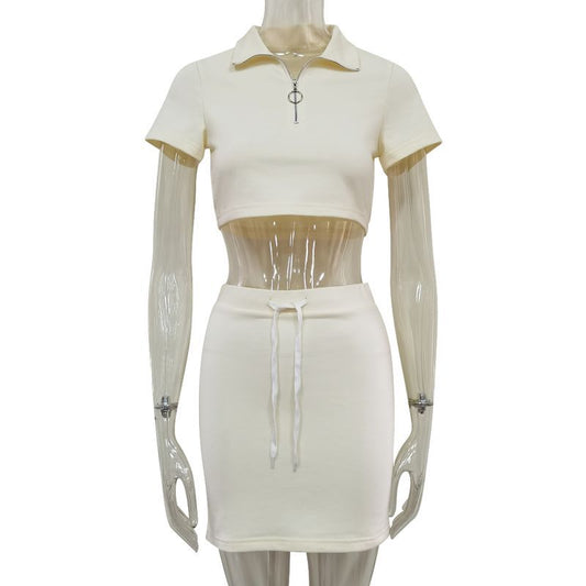 Summer Summer New T-shirt Skirt Zipper Short Sleeve Top And Skirt Leisure Sports Suit