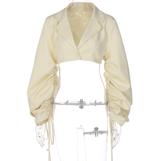 Suit Collar Drawstring Long Sleeve Crop Top