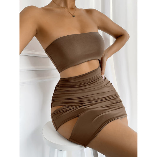 New Women's Hollow Out Waist European And American Summer Tube Top Simple Dress