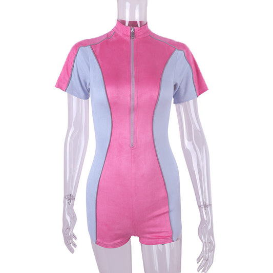 Contrast zip stitching jumpsuit