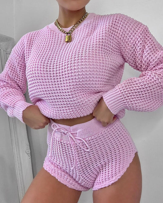 Long sleeve shorts sweater two-piece suit
