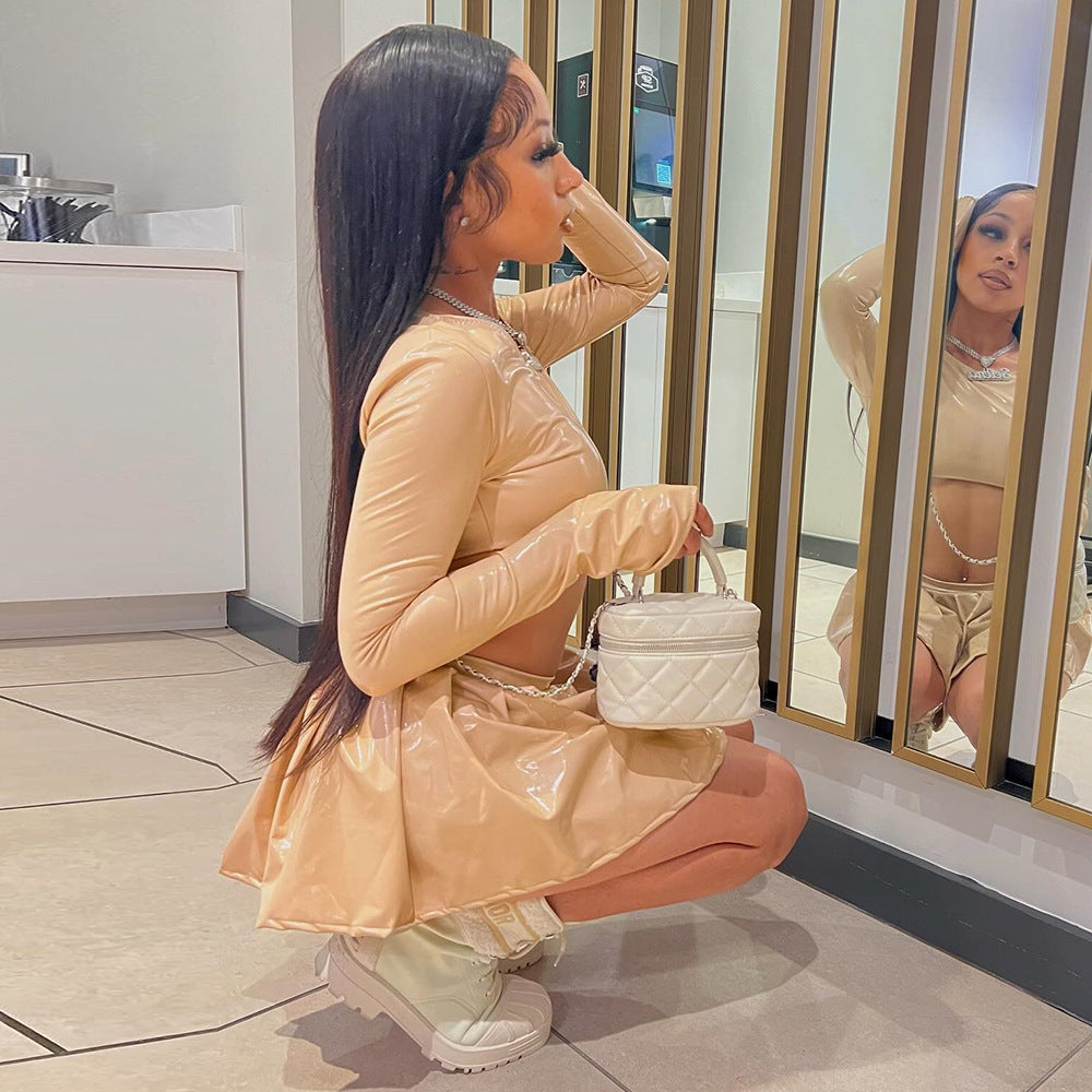 Long Sleeve Round Neck Sexy Pleated Skirt Two-piece Set